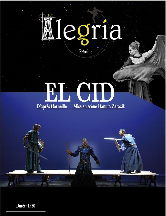 Spectacle à la fois vivant, humain et esthétique. Les vers de Corneille sont respectés,énoncés avec naturel par les comédiens, et mis en valeur par une excellente diction et des respirations qui en soulignent le sens et la beauté. La mise en scène inventive déploie des combats à l'épée, des danses évoquant des figures de flamenco et des chants extrêmement harmonieux, ornementant la pièce sans jamais la dénaturer. Le personnage du roi introduit un côté comique, fin, original et très drôle. Chimène et Rodrigue vivent devant nous, passionnément, leur amour contrarié; Don Diègue se révolte contre les vicissitudes de la vieillesse, avec une rage et un désespoir qui nous prennent aux tripes; l'infante lutte avec douleur contre ses sentiments pour Rodrigue et le père de Chimène crache brillamment son orgueil, avant de mourir. Tous sont entourés de servantes, page et gentilshommes très à l'aise dans leurs rôles. Nous avons emmené deux de nos petites filles voir cette représentation; l'une d'elle est âgée de quatre ans. Nous lui avions expliqué l'histoire exposée par la pièce; elle a assisté au spectacle, sans "décrocher", du début à la fin. Nous lui glissions, de temps à autre, un complément discret d'information. La seconde, âgée de 11 ans, a déjà apprécié "Arlequin..." et "Le malade..." joués par la même Compagnie; elle aussi a particulièrement aimé "El Cid". Tout cela pour exprimer que les aspects visuels sont réellement captivants. "El Cid" mérite qu'on se dérange de très loin pour le voir. Bravo à la Compagnie Alegria!