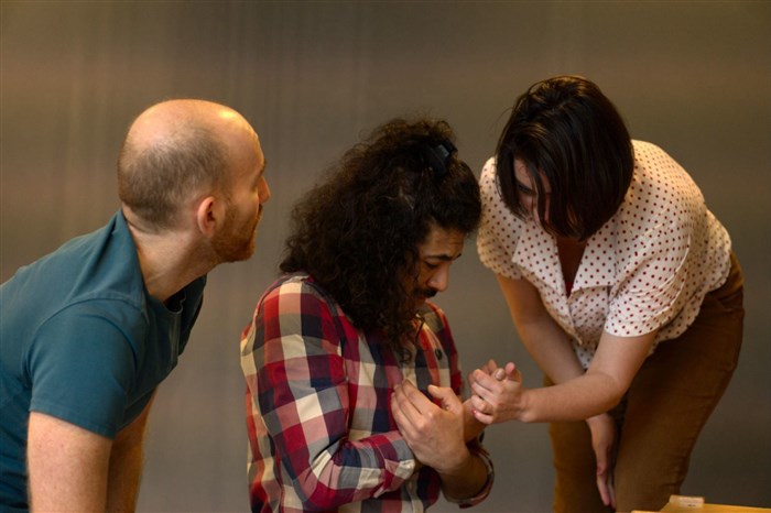La musique retentit dans la salle obscure, les comédien.nes entrent en scène. Ils vous demandent de leur proposer différents lieux, puis vous choisissez à l'unanimité votre favori.