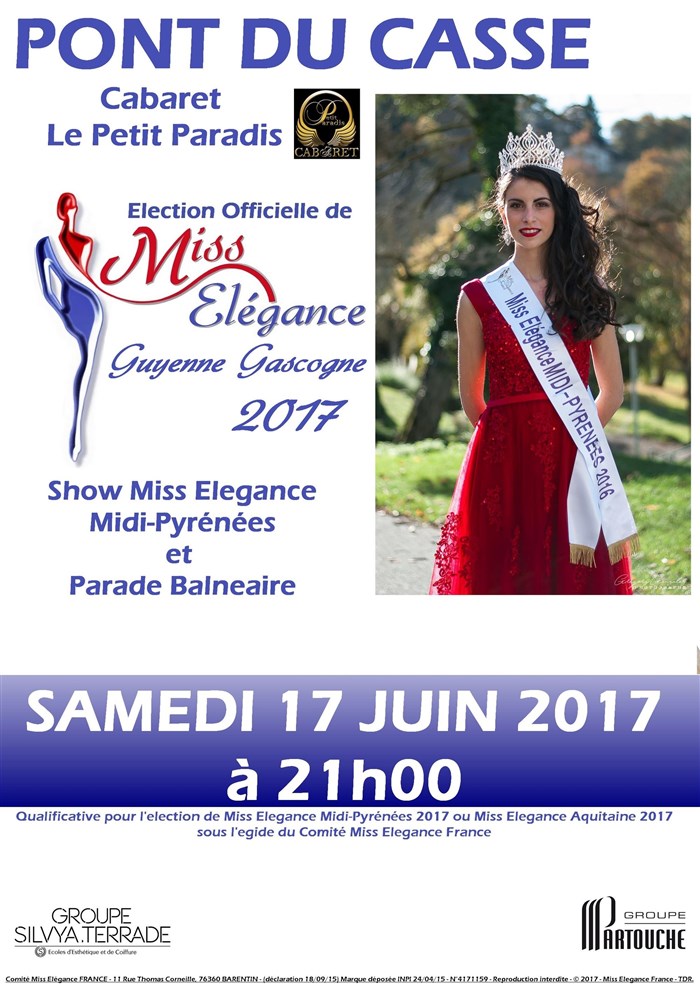 Election Miss Elegance Guyenne Gascogne 2017 sous l'egide du Comité Miss Elegance France, qualificative pour Miss Elegance Midi-Pyrénées ou Aquitaine.