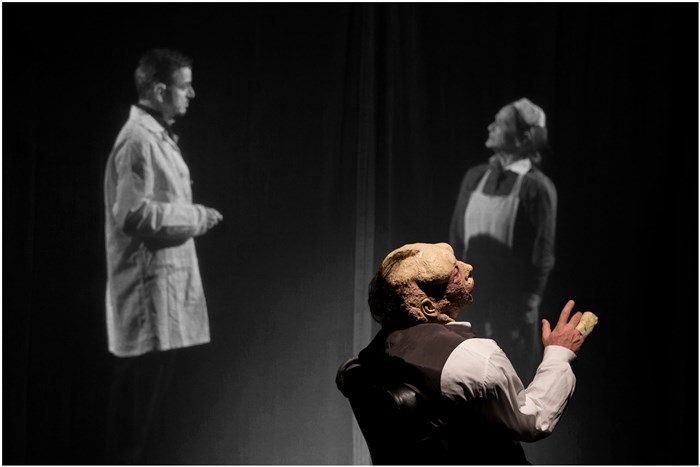 En hommage au chef-d'oeuvre de David Lynch, costumes, éclairages et scénographie déclinent le noir et blanc, pour décaler le spectacle, lui redonner sa valeur de conte ancien, un conte dont la portée philosophique et humaniste demeure universelle et profondément actuelle.