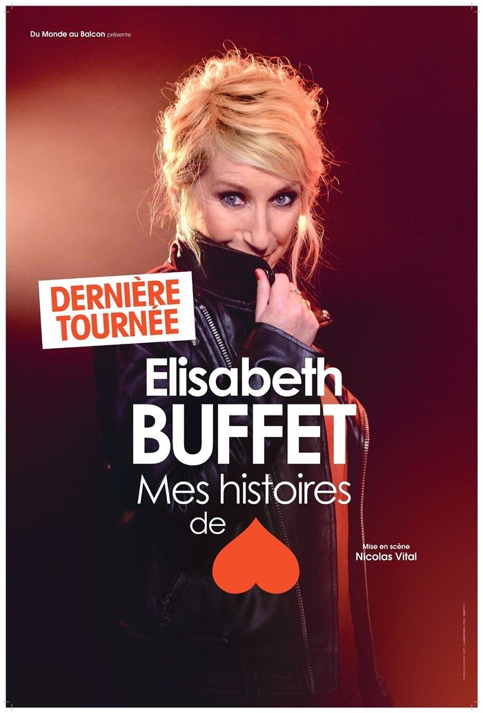Découvre Elisabeth Buffet dans Mes histoires de coeur, qui fait partie de notre sélection d’événements de type Meufs drôles et qui se tient ici : Le Pont de Singe -
