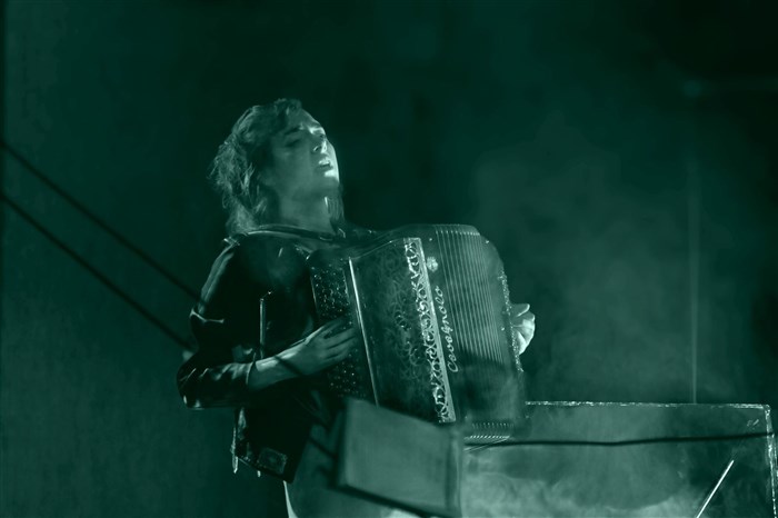 Joué par trois comédiennes/musiciennes, "Elles" évoque avec pudeur le parcours d'une accordéoniste martyrisée par le chanteur de son groupe, d'une employée écrasée par sa supérieure et d'une réfugiée Afghane qui tente de retrouver un sens à la vie après son départ forcé de Kaboul en proie au régime des Talibans.