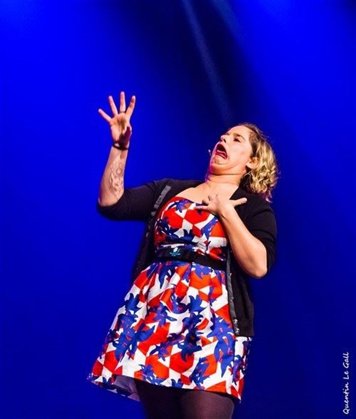 Avec son nom de famille à coucher dehors et son lourd passé d'animatrice petite enfance, cette trentenaire à l'humour libérateur impose sur scène, en quelques minutes, son univers faussement naïf.