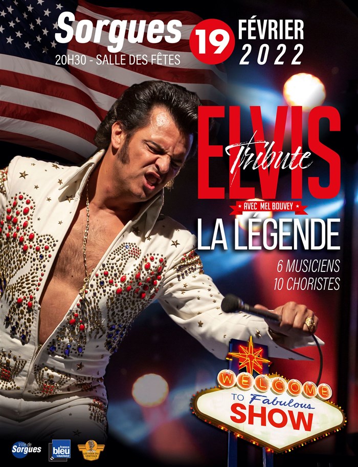Deux heures pour redécouvrir les plus grands succès qui ont façonné la légende du King. Le groupe saura vous surprendre par sa capacité à recréer l'atmosphère et la chaleur d'un spectacle d'Elvis. Vous retrouverez les sons d'époque, le style fidèle et l'incroyable énergie déployée par les musiciens, le soutien vocal des choristes et bien sûr, la voix d'Elvis, Mel Bouvey, chanteur passionné et influencé par Elvis jusqu'au moindre détail : ses costumes sont la réplique parfaite de ceux que portaient Elvis, son micro est un Electro-Voice RE15, identique à celui utilisé par Elvis de 1969 à 1977 et sa guitare acoustique Gibson super jumbo SJ-200 est la même que celle d'Elvis.