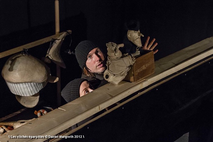 Dans l'ingénieux castelet se cachent un gros chien, des pingouins, un bateau, une île, un requin, un ukulélé, une main, deux mains, quatre mains et moult références au cinéma muet et au cartoon pour un spectacle poétique plein d'humour.