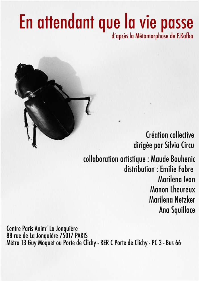 "En attendant que la vie passe..." c'est une étape de travail, tragique, comique d'un laboratoire sur "La Métamorphose" de Franz Kafka, lancé en 2016.
