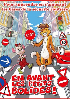 "En avant les petits bolides" ou comment apprendre en s'amusant les bases de la sécurité routière : Traverser une rue en toute sécurité, comprendre le fonctionnement des feux tricolores, savoir reconnaître les panneaux de circulation, dissocier sa droite de sa gauche et surtout acquérir les bons réflexes en voiture et sur la route.