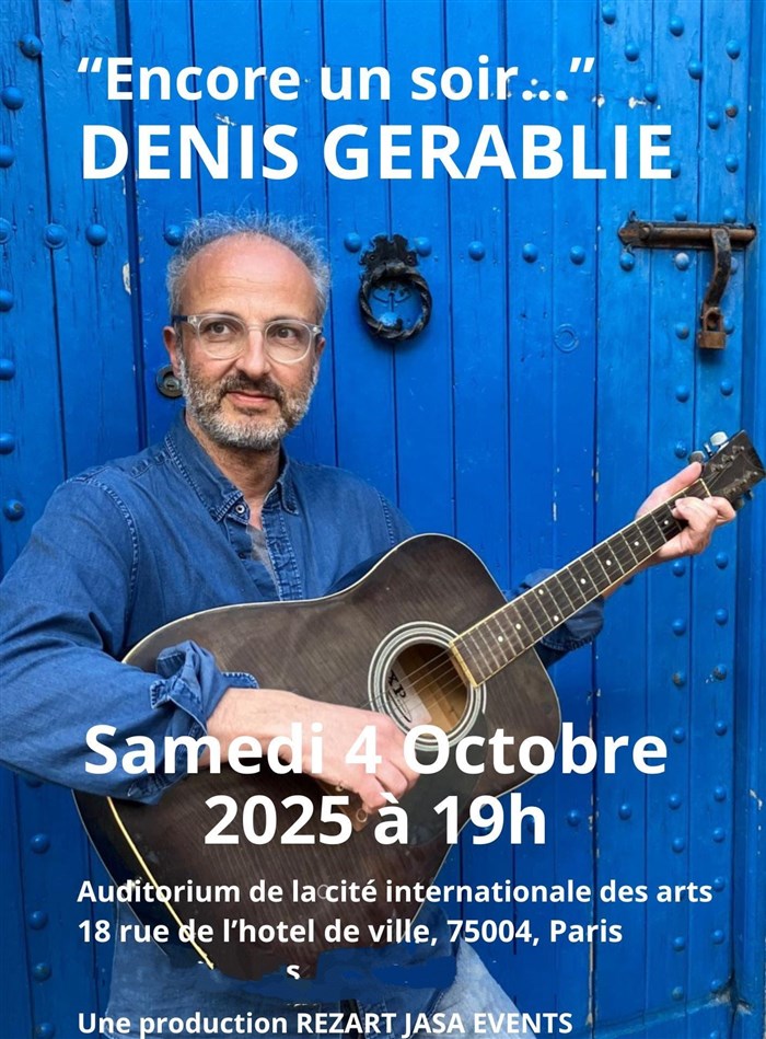 Denis Gérablie donne aujourd'hui des concerts un peu partout dans le monde. C'est son deuxième concert à l'Auditorium de la Cité Internationale des Arts, désireux de faire connaitre la richesse du patrimoine de la chanson Française d'hier et aussi d'aujourd'hui.