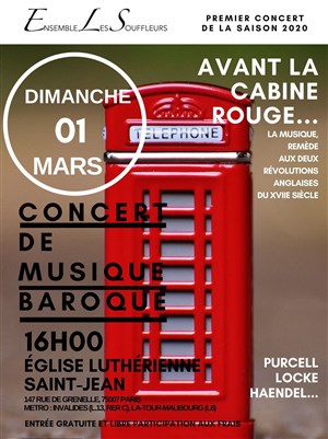 vNe ratez pas l'appel de la cabine rouge londonienne ! Les Souffleurs vous attendent de pied ferme pour vous faire découvrir, toujours en grand effectif, cette musique anglaise baroque si vivante et colorée.