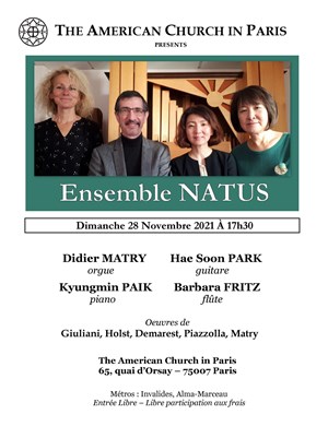 L'Ensemble Natus est un ensemble de musique de chambre qui vous propose aujourd'hui un quatuor constitué de flûte, guitare, orgue et piano.
