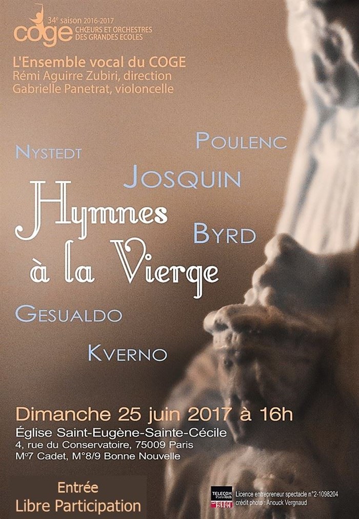 L’événement Ensemble Vocal du COGE (Choeur et Orchestre des Grandes Ecoles) de type Musique classique, organisé ici :