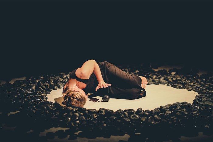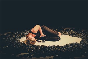 Une goutte, deux, trois, une pluie, une ondée à peine. Le silence, quelques notes de piano. La lumière, un trait de lumière. Au sol, des galets noirs mouillés. Ils attendent.