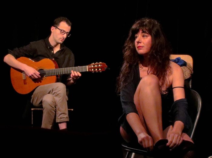 Sur scène, la voix de l'autrice et la musique improvisée s'accordent pour aller ensemble vers une libération, comme un rituel de passage à chaque représentation. Au gré des dates, Laetitia Moréni dialogue avec un partenaire différent : le guitariste Tom Escobar, la violoncelliste Anna Litvinenko ou le pianiste Léonard Pelletier. Ici, l'improvisation musicale n'est pas un décor : c'est le moteur d'une métamorphose nécessaire qui bat au rythme du souffle de la comédienne.
