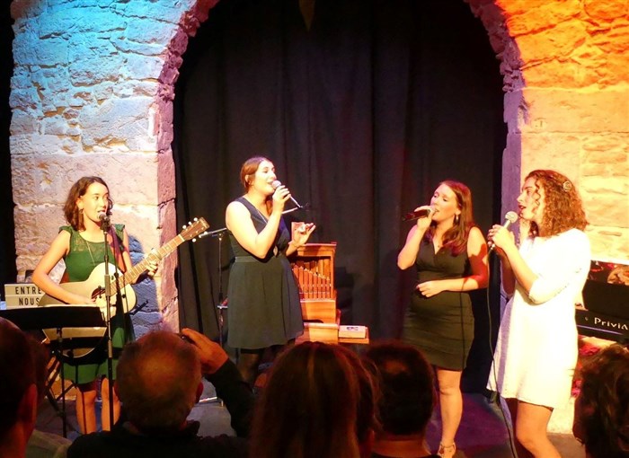 un enchantement!Quatre jeunes artistes à la voix d'or, musiciennes et qui plus est adorables!C'était leur "première" à Paris et donc une découverte de qualité.Les arrangements vocaux et musicaux, le choix des chansons françaises et internationales,une ambiance des plus chaleureuses, une interaction public-artistes sans chichi avec humilité et simplicité!Nous avons chanté sous les masques, nos pieds ont marqué la cadence...c'était vraiment bien.Entendre "les blondes", le" mistral gagnant";les yeux de mama,"la visite","place des grands hommes", emenez moi","i feel good"....Quel plaisir de pouvoir tester nos "connaissances" de la chanson sur une simple note ou un indice musical.N'hésitez pas , foncez les découvrir