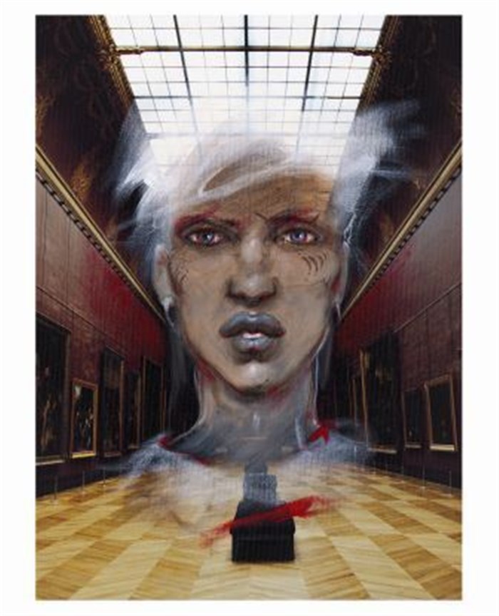 Bilal est au Louvre... Il photographie près de 400 oeuvres emblématiques, sous un angle souvent décalé, inattendu. Il en choisit 23, qu'il fait tirer sur des toiles de 50 x 60 cm.