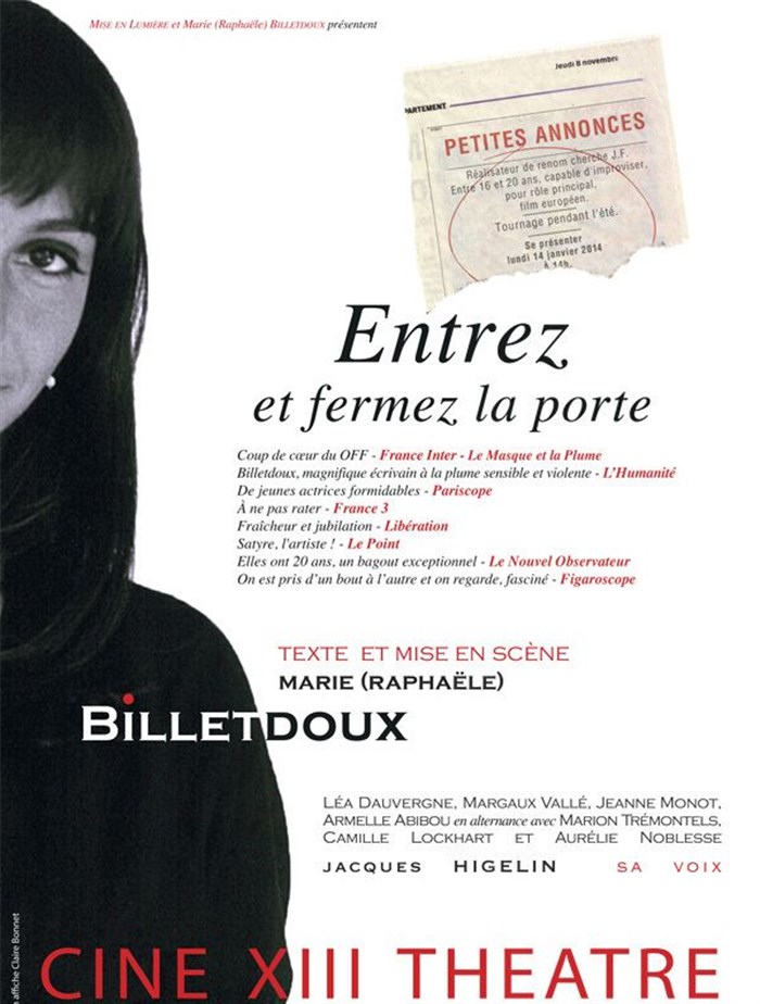 L’événement Entrez et fermez la porte de type Théâtre contemporain, organisé ici :