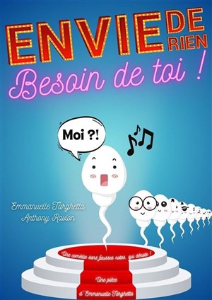 Envie de rien besoin de toi !!! Humour et tendresse avec 2 acteurs de premier ordre, je recommande cette pièce à tous ceux qui veulent rire et passer un excellent moment. Et toutes nos félicitations à Emmanuelle Targhetta pour son écriture et son interprétation mais également pour son talent. Bravo à Léon Bénichon dont nous avons beaucoup apprécié l'interprétation tout comme celle, désopilante, de la relouqueuse !!!