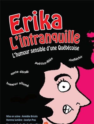 "Erika l'Intranquille" est un spectacle poético-humoristique qui aborde les décalages entre la France et le Québec, la question des racines, le sens de la vie, le logement et les croyances