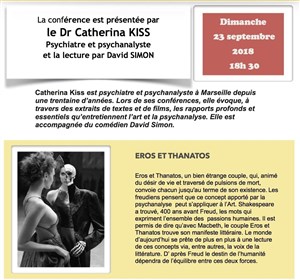 Cycle de conférences Psychanalyse et Littérature qui débute avec : " Éros et Thanatos " Par le Docteur Catherina KISS, lecture par David Simon.
