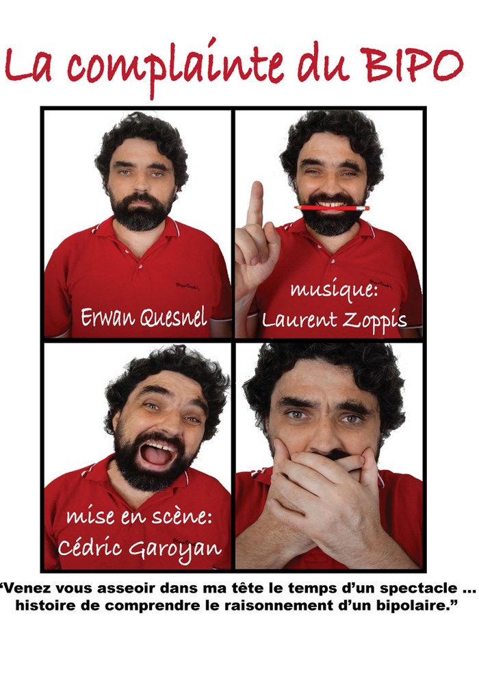 Bonjour, Etant diagnostiqué bipolaire depuis 2005 après 3 ans d'errance psychique, hospitalisations en HDT et maisons de repos, ma maladie a été longue à accepter. Elle s'est faite par des discussions depuis 2004 avec le même psychiatre. Hier, je suis donc venu avec ma compagne depuis 12 ans et avec mon vécu de bipo. J'ai été déconcerté car je ne me retrouvais pas dans les phases maniaques jouées car peut être poussées à l'extrême ou bien j'ai "oublié". Ce texte, ainsi que son interprétation de cette complainte que j'ai adorés, sont très dirigés vers les phases maniaques. J'ai longtemps regretté leurs absences depuis la prise de mon traitement. Et dans son spectacle, je ne retrouve pas ces phases de descente qui durent aussi "une semaine" et que je ne veux plus vivre. Ces deux pôles timorégulés, m'empêche depuis, de revivre une sensibilité exacerbée. Erwan a su par ses cotés, créatifs dans son texte, énergiques sur scène, me faire voir surement qu'il conserve cette "folie" maniaque en montrant sa différence face à nous tous. Son traitement arrive surement à le canaliser dans son quotidien et ce spectacle c'est son moment d'exutoire face à la "normalité". Comment fait il pour jouer alors aussi bien ce personnage ? Réponse de mon collègue de travail: c'est un véritable acteur!