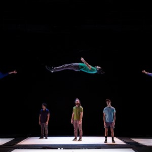 Et les six acrobates s'en donnent à coeur joie : au rythme d'une musique enivrante, ils deviennent les fous volants les plus bondissants, brisant net les frontières entre ciel et terre.