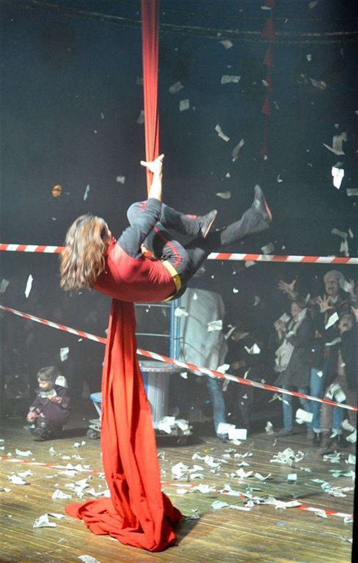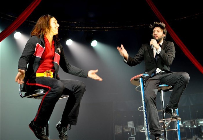Déjanté, politique, participatif, circassien et sans frontières – le spectacle expérimente en live les ressorts de la propagande de l'Est et de l'Ouest et fait voler en éclats quelques idées préconçues.