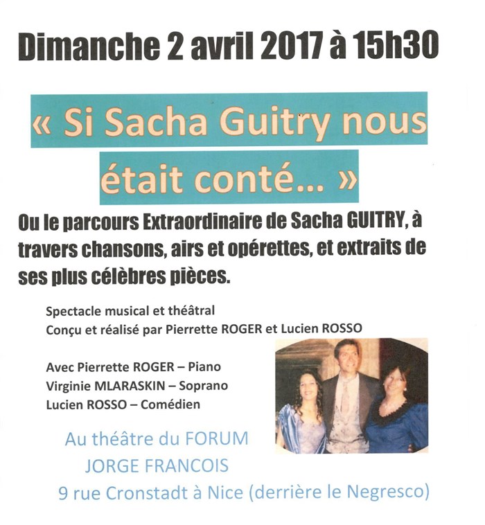 L’événement Et si Sacha Guitry nous était conté... de type Chansons Poétiques, organisé ici :