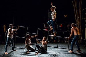 Cinq acrobates jouent avec une marelle métallique géante et inventent leur propre monde. Un spectacle pour tous et qui parle de notre ado intérieur.