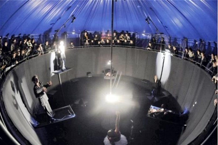 Aucun inconfort ne sera épargné au public. Il y a d'abord le dispositif scénique : une obscurité profonde, à couper au couteau, sous un chapiteau tout en hauteur. (...) Il y a ensuite le texte, une logorrhée de mots et de chiffres dans laquelle l'insoutenable se mêle à la vétille (...)