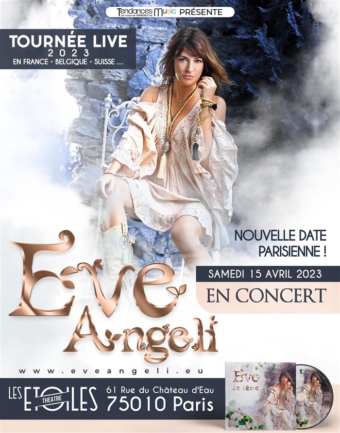 Eve Angeli vous donne rendez-vous au théâtre Les Etoiles à Paris, le samedi 15 avril 2023 pour partager une soirée unique durant laquelle elle retracera ses 22 ans de carrière en amour de la chanson.