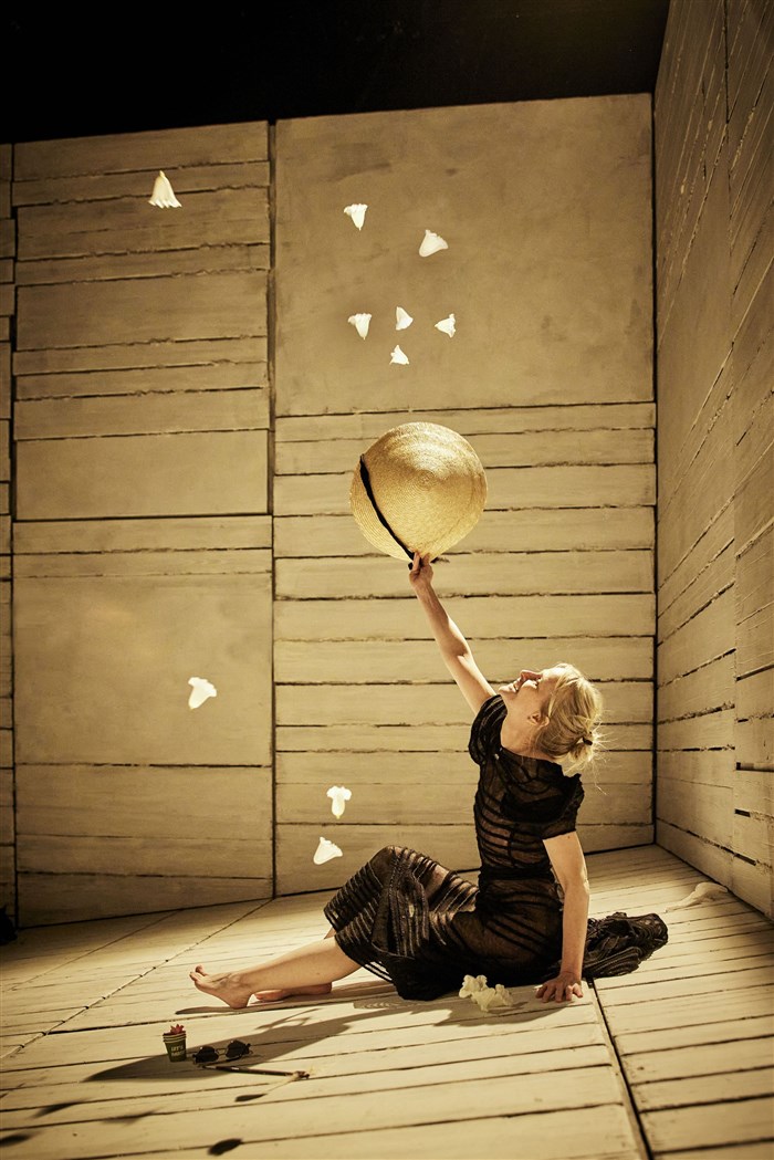 Au milieu d'un plateau aux nuances multiples, Anne Kessler exécute un geste théâtral qui va de pair avec l'épure du dessin.