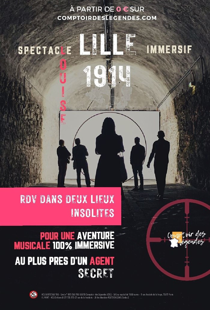 VOTRE SPECTACLE L'aventure débute en 1914 – Un conflit lointain éclate en Europe, personne ne se doute alors des répercussions internationales que cela engendrera... Des rumeurs de mobilisation commencent à se répandre. Les derniers espoirs de paix disparaissent quand la guerre est déclarée. Abandonnée par l'armée française, Lille comme le reste du Nord de la France, vit sous occupation allemande jusqu'au jour où la résistance se met en place menée sous l'impulsion d'une jeune femme au courage extraordinaire. VOUS ALLEZ ADORER VOTRE 1ERE RENCONTRE Découvrez en avant-première les débuts d'aventure sur l'une des plus grandes résistantes françaises au courage et à la détermination sans faille en embarquant dans un spectacle épique, sensationnel et immersif au coeur d'un patrimoine époustouflant caché du grand public. Pendant 1 heure, soyez au coeur de l'histoire en participant à une expérience qui alliera rythmiques sonores, chants, lumière, danses et théâtre immersif en plein coeur de Lille, ville natale de notre héroïne.