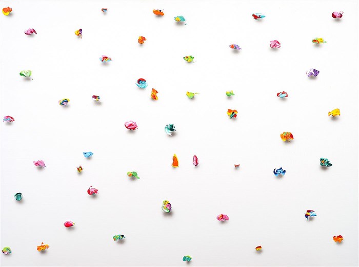 Loin de l'anecdotique, ce travail nous ramène à l'essentiel de la peinture, chaque touche de couleur à une vie propre et révèle la magie des croisements de la matière et des pigments. Un processus de création où l'acte pictural devient la " preuve physique " de la présence du plasticien, où le temps et l'espace s'impriment dans la trace.