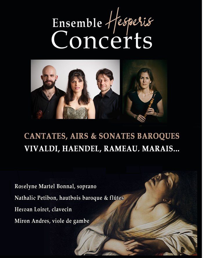 Hesperis est un ensemble qui réunit quatre musiciens (Roselyne Martel Bonnal soprano, Heroan Loiret au clavecin, Miron Andres à la viole de gambe, Nathalie Petibon au hautbois et à la flûte).