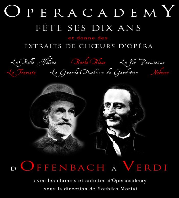 A l'occasion de ses 10 ans operacademy et son choeur donneront de larges extraits d'opéra d'Offenbach et de Verdi avec les solistes de la troupe.