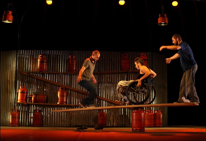 Quand on est circassien, faire de l'équilibrisme sur une bonbonne de gaz équivaut à jouer avec le feu. ... Et quand on joue avec le feu, mieux vaut avoir un solide esprit d'équipe. Voici le credo de ce drôle de trio : qu'un seul flanche et c'est tout le monde qui tombe.
