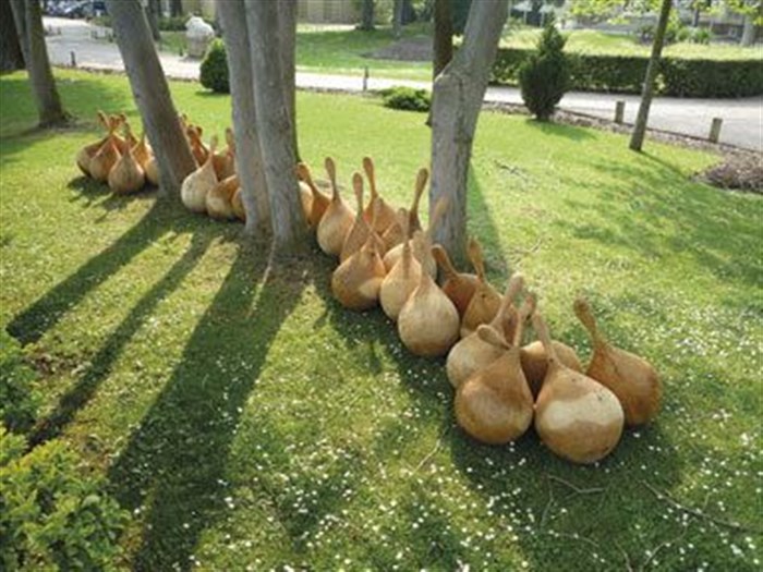 Fabienne Gaston-Dreyfus a commencé il y a un an à sculpter des formes qui campent entre figurine et quilles et qu'elle agglutine car elles ne tiennent qu'appuyées les unes contre les autres.