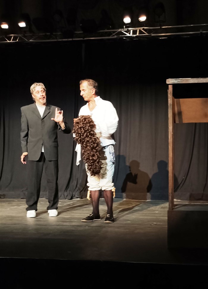 Comment vous raconter brièvement cette pièce jubilatoire de bout en bout ? Dans ce spectacle écrit, mis en scène par Yves Sauton, qu'il joue également avec Olindo Cavadini, vous allez au devant d'une extraordinaire rencontre entre deux personnages que quelques siècles séparent mais finalement si peu.