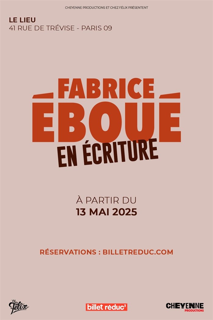 Fabrice Éboué revient avec un nouveau one man show En écriture au Théâtre Le Lieu à Paris. Révélé au Jamel Comedy Club comme Amelle Chahbi, Thomas Ngijol ou Claudia Tagbo, l'acteur français continue de ravir la scène dans une ambiance intimiste. En attendant votre représentation (les places sont limitées dans cette salle de rodage !), revisionnez les épisodes d'Inside Jamel Comedy Club avec Jamel Debbouze en guest star ou ses précédents spectacles ! Encore hésitant(e) ? Les avis des spectateurs qui l'ont déjà vécu seront d'une aide précieuse !