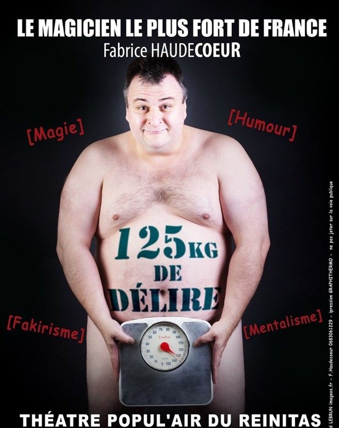 Hé oui avec 125 kg ("de délire" )... il vous emmènera dans son univers mélangeant humour, magie, fakirisme, mentalisme avec un brun de folie.