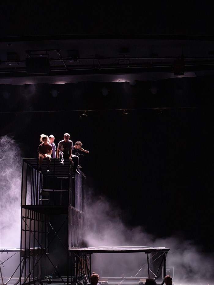 Au-delà de l'aspect très graphique de cette scénographie acrobatique, on plonge dans l'intime d'un personnage aux multiples facettes... Les chutes et les envols deviennent les métaphores d'un monde auquel il faut s'adapter : Comment faire groupe quand l'exclusion est devenue la règle.
