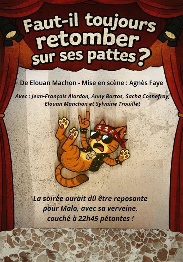 Découvre Faut-il toujours retomber sur ses pattes ?, qui fait partie de notre sélection d’événements de type Comédie et qui se tient ici : Théâtre de l'Anagramme -
