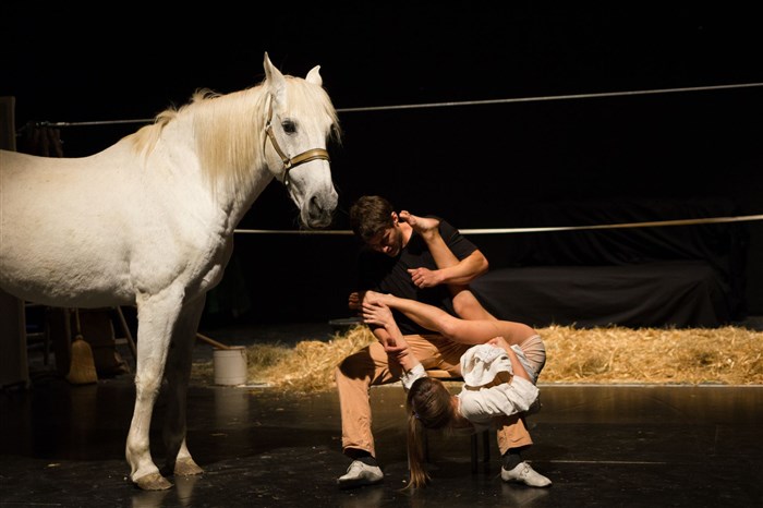 se confronter à la présence d'un cheval sur un plateau de théâtre et de la rencontre avec la pièce de David Harrower "Des couteaux dans les poules".
