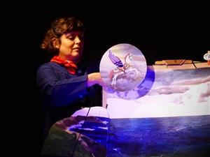 Une artiste, Rozine, déploie ses cartons à dessin et déplie progressivement son histoire avec Fénix, son meilleur ami.