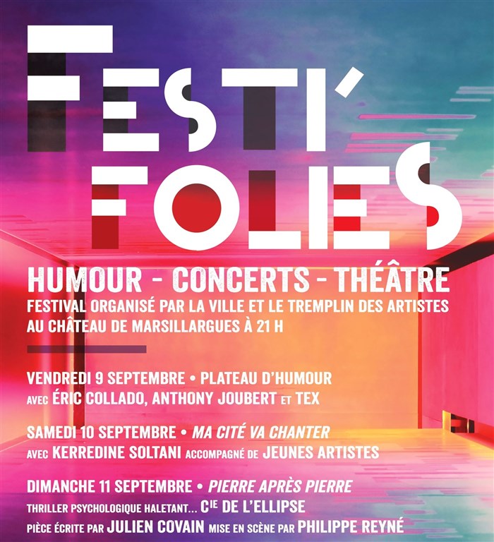 Festi' Folies : le premier festival culturel dans le château de Marsillargues, organisé par la ville et l'association Le Tremplin des Artistes.