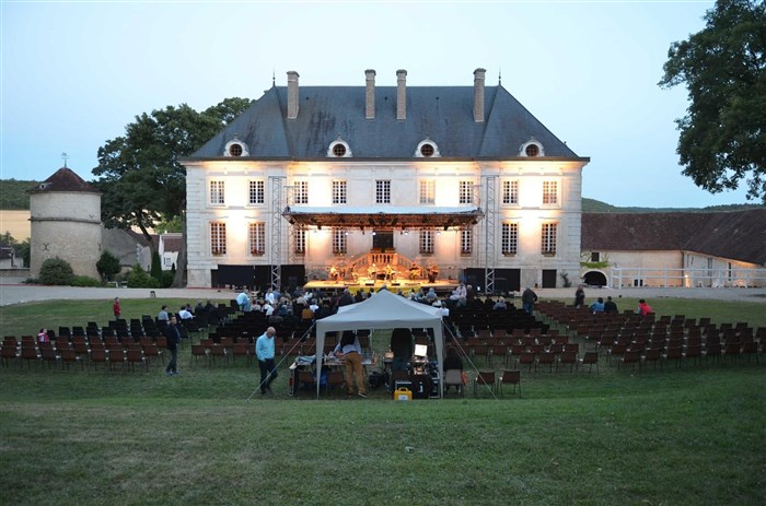 La scène, placée devant le château et le cirque naturel sur lequel le public est assis, réverbèrent le son idéalement, procurant une ambiance unique, dans ce parc de chênes centenaires.