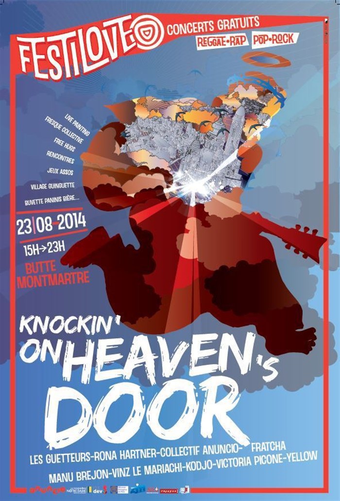 De 14h à 0h, village ginguette avec buvettes, jeux de foire, stands d'associations et d'artistes, atelier de street art, boutique, fanfare et concerts. En soirée : spectacle musical exceptionnel sur le thème de l'amour alliant pop-rock, reggae, rap, soul et folklore. Un moment inoubliable à ne pas rater au sommet de la capitale !