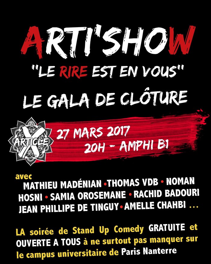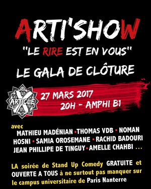 Arti'Show : au-delà du simple jeu de mot – qui plus est facile – c'est un festival d'humour organisé par l'association Article X.