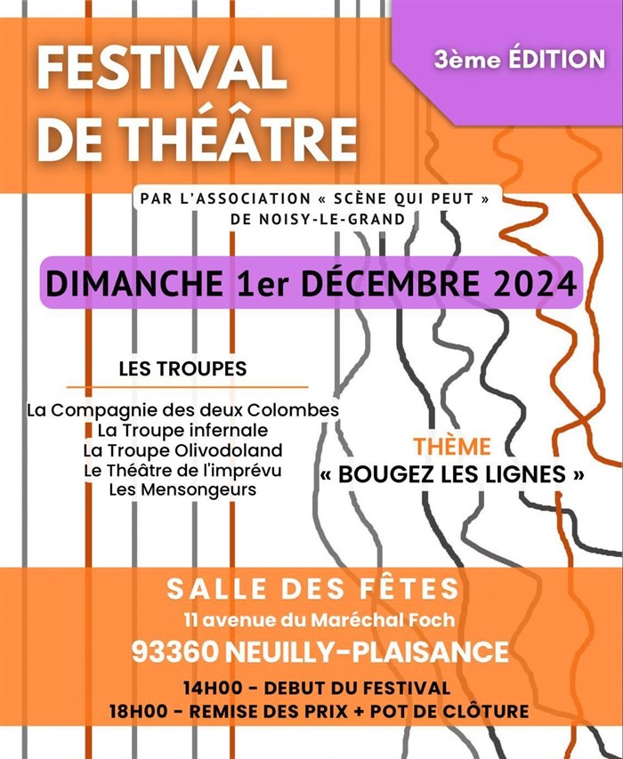 L'Association Scène Qui Peut est fière de vous présenter la 3ème édition de son Festival de Théâtre.