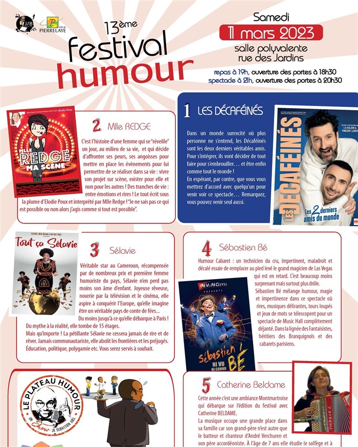 13ème édition du Festival Humour de Pierrelaye avec une sélection d'artistes tous bien différents.